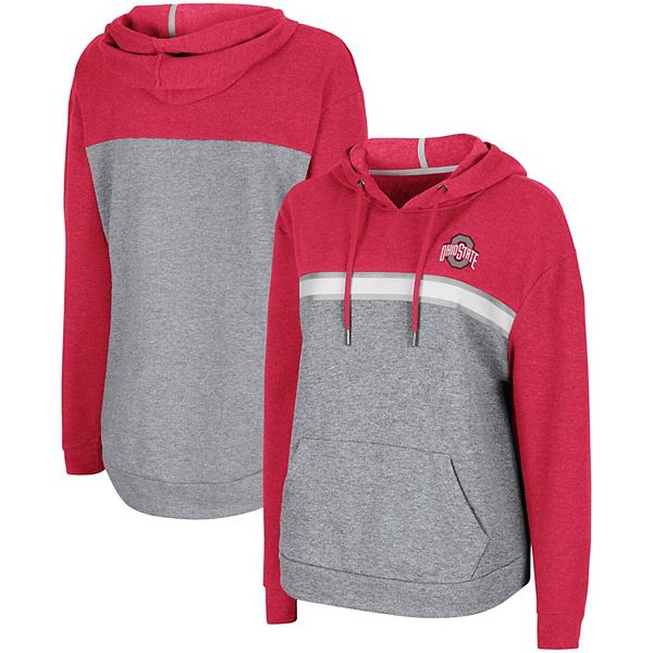 Women S Colosseum Heathered Scarlet Heathered Gray Ohio State Buckeyes Pam Taping Pullover Hoodie
